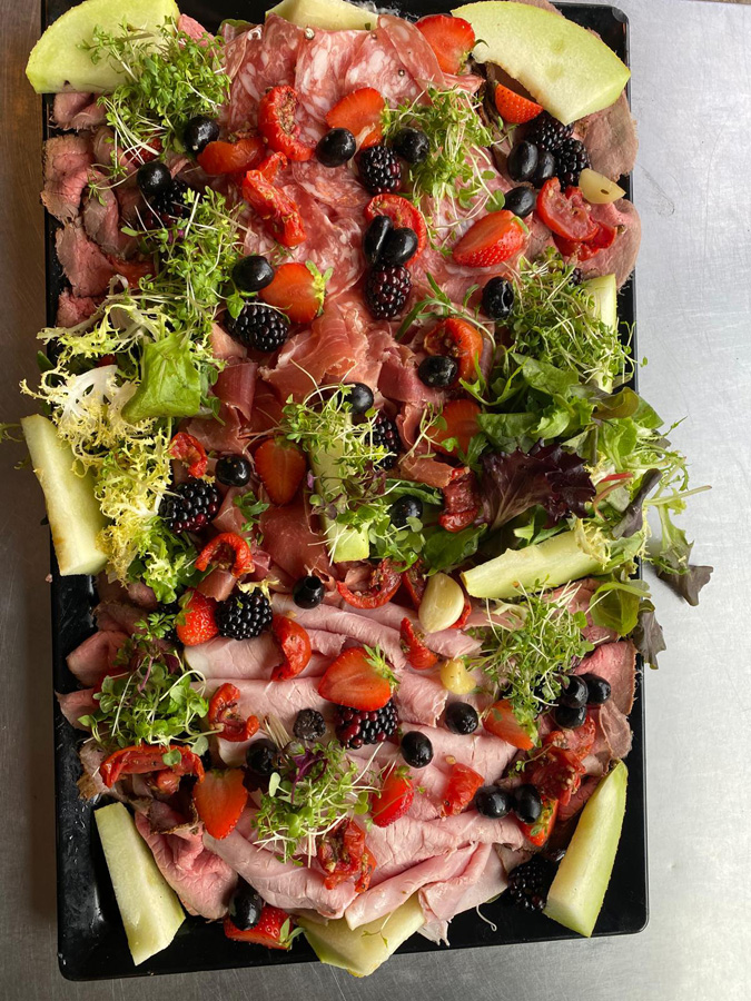 Denk aan kleurrijke salades, warme gerechten boordevol smaak, huisgemaakte sauzen en verrassende vegetarische opties. Alles wordt met zorg samengesteld en op locatie geleverd of live ter plekke klaargemaakt door onze chef.